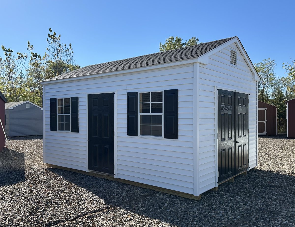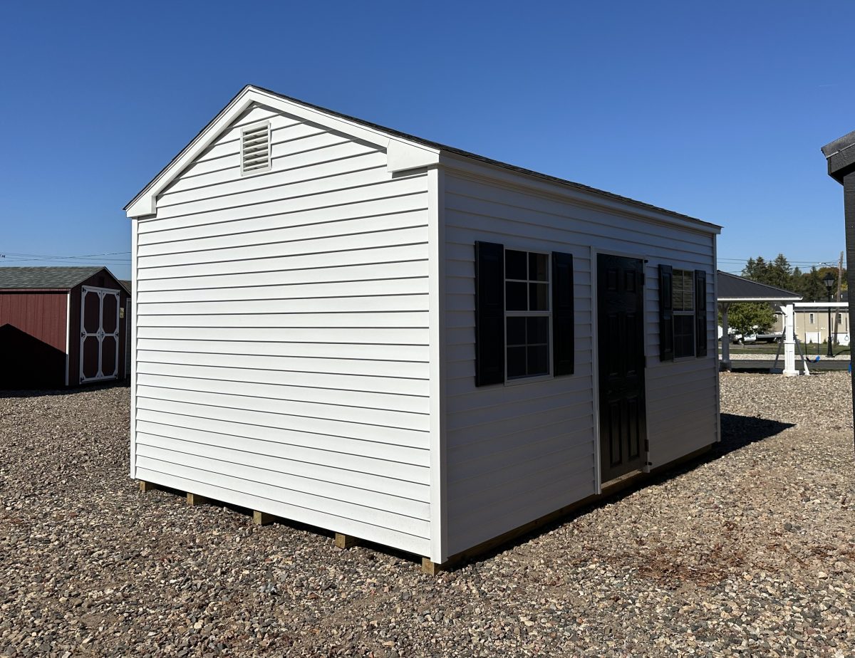 This garden shed features classic straight lap vinyl siding which is a popular option among our consumer base. With lifetime vinyl siding, lifetime Tamko shingles, and a 25 year PerformMax floor, this Amish shed is built to last. Available for purchase or you can order a shed or garage and choose your style, size, color scheme, as well as layout. Stop down to our location on the Berlin Turnpike in Berlin to view this and many others at Central Connecticut’s largest displays of storage sheds.