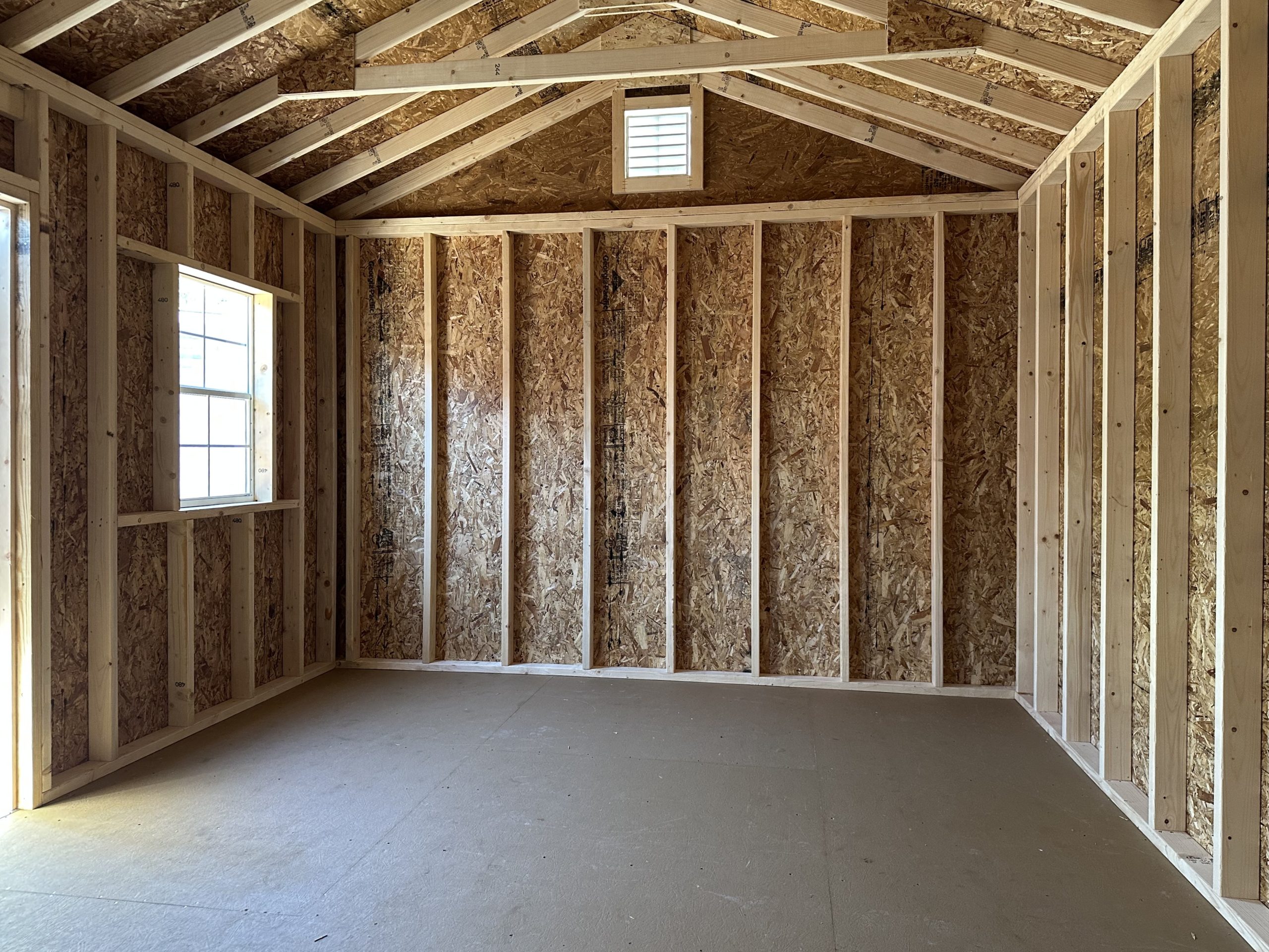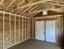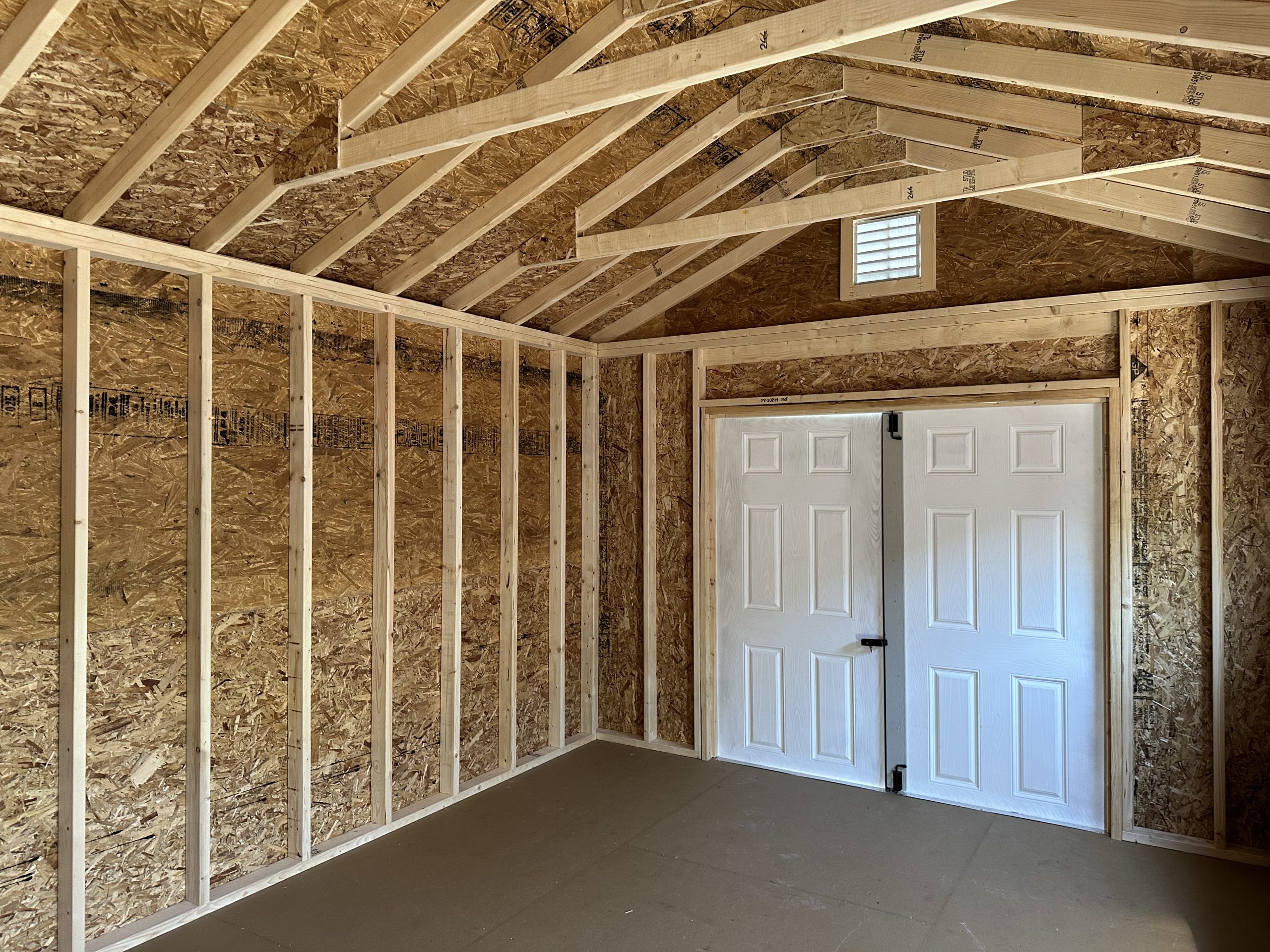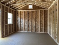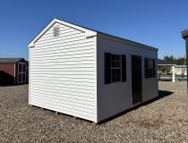 This 12×16 shed is located at our Berlin location. Being 192 square feet, no building permit is required. This shed has 6×6 fiberglass doors on the 12′ gable end, and a single fiberglass door with 2 24×36 windows on the 16′ wall. This shed features classic straight lap vinyl siding which is a popular option among our consumer base. With lifetime vinyl siding, lifetime Tamko shingles, and a 25 year PerformMax floor, this Amish shed is built to last. Available for purchase or you can order one and choose your style, size, color scheme, as well as layout. Stop down to our location on the Berlin Turnpike in Berlin to view this and many others at Central Connecticut’s largest displays of storage sheds.