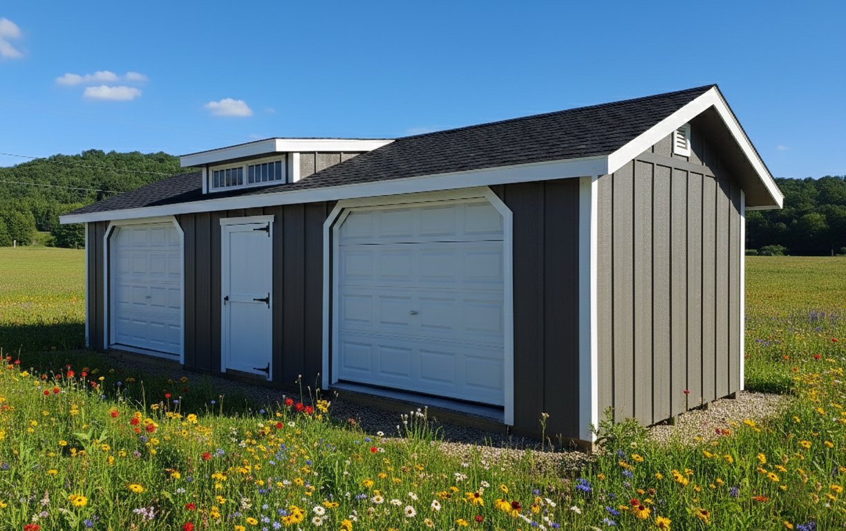 Check out this large heavy duty peak with 6/12 pitch roof! This building is ready to go at our Hanover location! Amish built to last with top quality 2×4 framing on 16″ centers, pressure treated 2×4 floor joists and 4×4 runners, architectural shingles (nailed not stapled), 2 – 8’6’6″ insulated garage doors, a man door and nice dormer for light. Includes Pine Creeks “Top to Bottom” 6 year warranty. Don’t wait! come in and check it out.