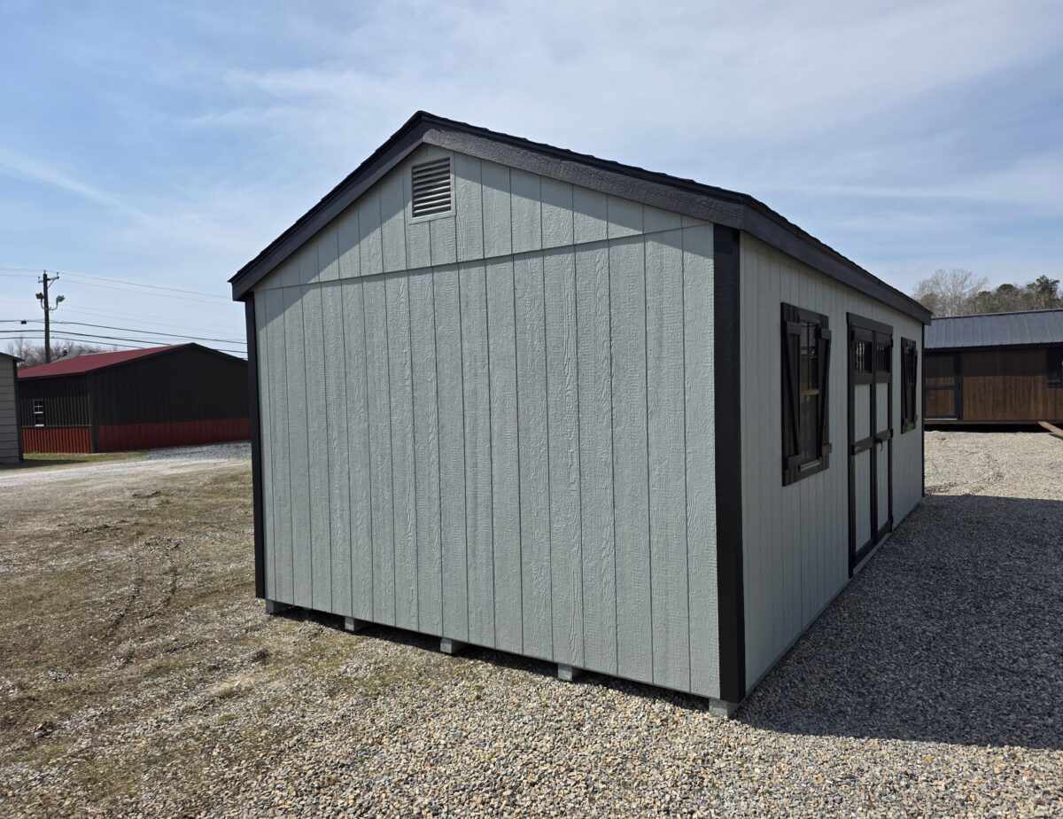 Looking for a beautiful storage building for all your storage needs? Here we have a 12×24 HD Side Entry Peak with our New England style appearance package. This storage shed offers ample storage and modern look. Dress up your backyard and have all the space you need. Stop by our sales location and check out this structure or design to your liking.