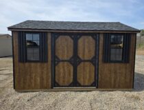 Here we have a great looking 10×14 HD Side Entry Peak Storage shed. With upgraded polyurethane stain paint to enhance the beauty of this shed and offers ample storage space for your back yard space makes it the perfect choice. Stop by today to check this model out or design one to your preferences.