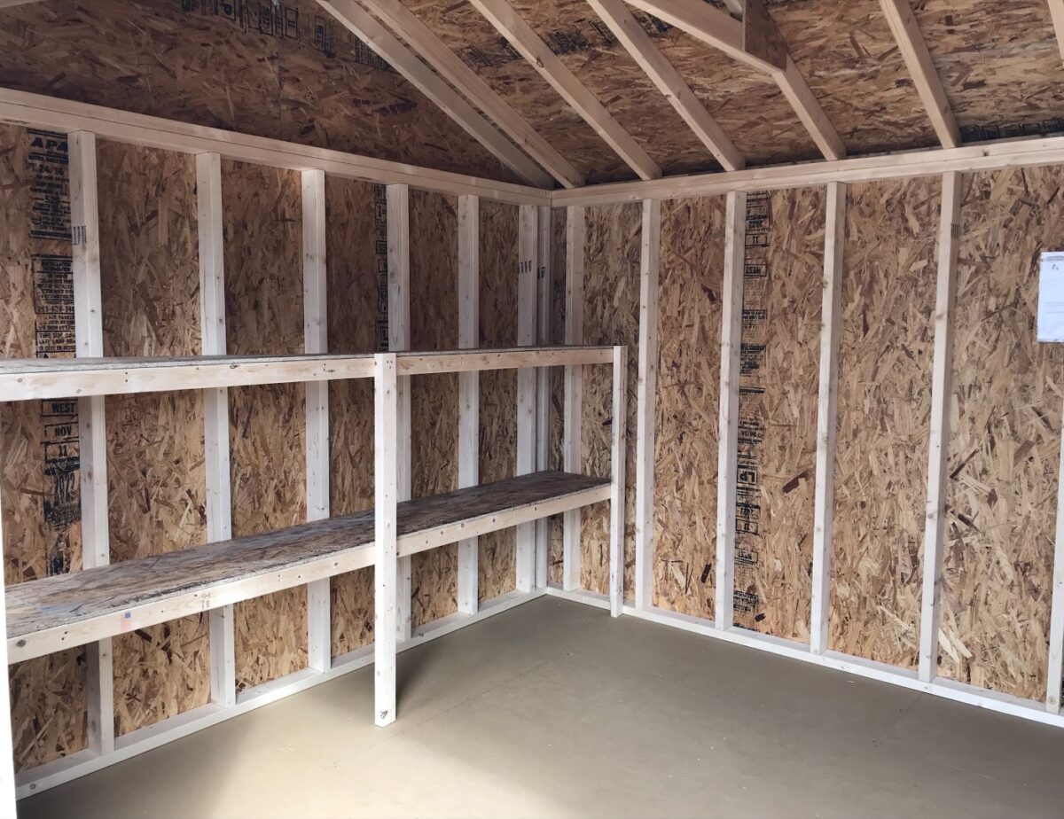 Our Amish craftsmen also built shelves inside to provide additional storage.