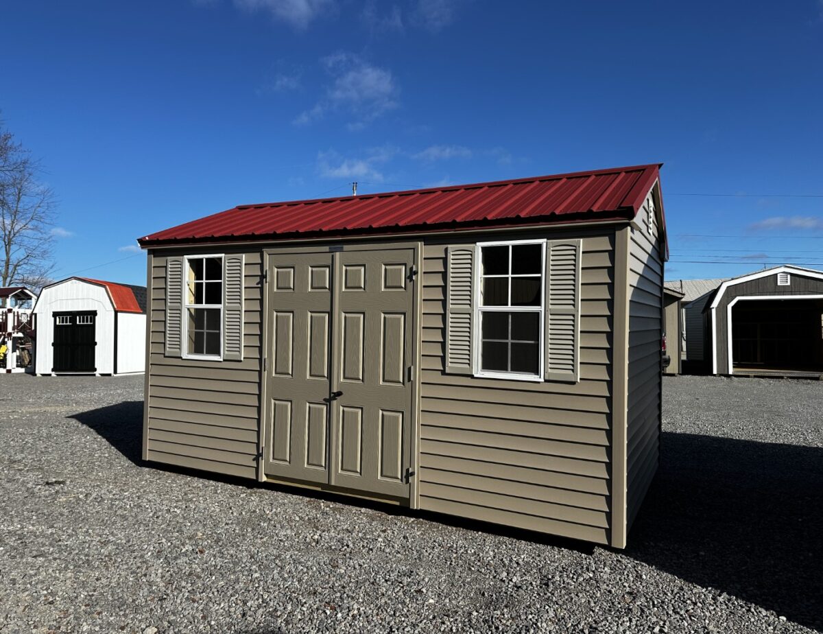 The peak style features a 5/12 roof pitch.