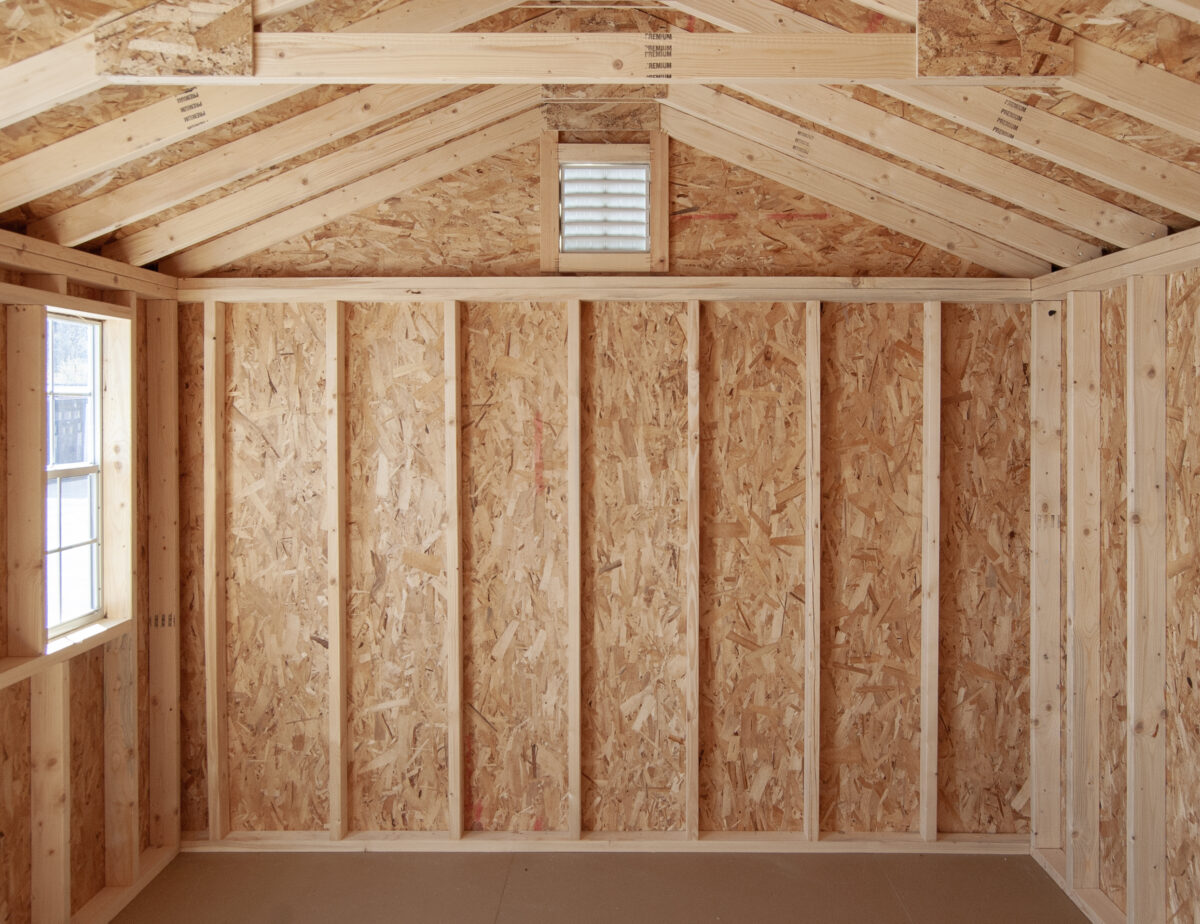 - Quality Built with 4x4 pressure treated runners, double top wall plates (with interlocking corners), 5/8'' engineered floor sheathing, and 2x4 wall and rafter studding on 16" centers