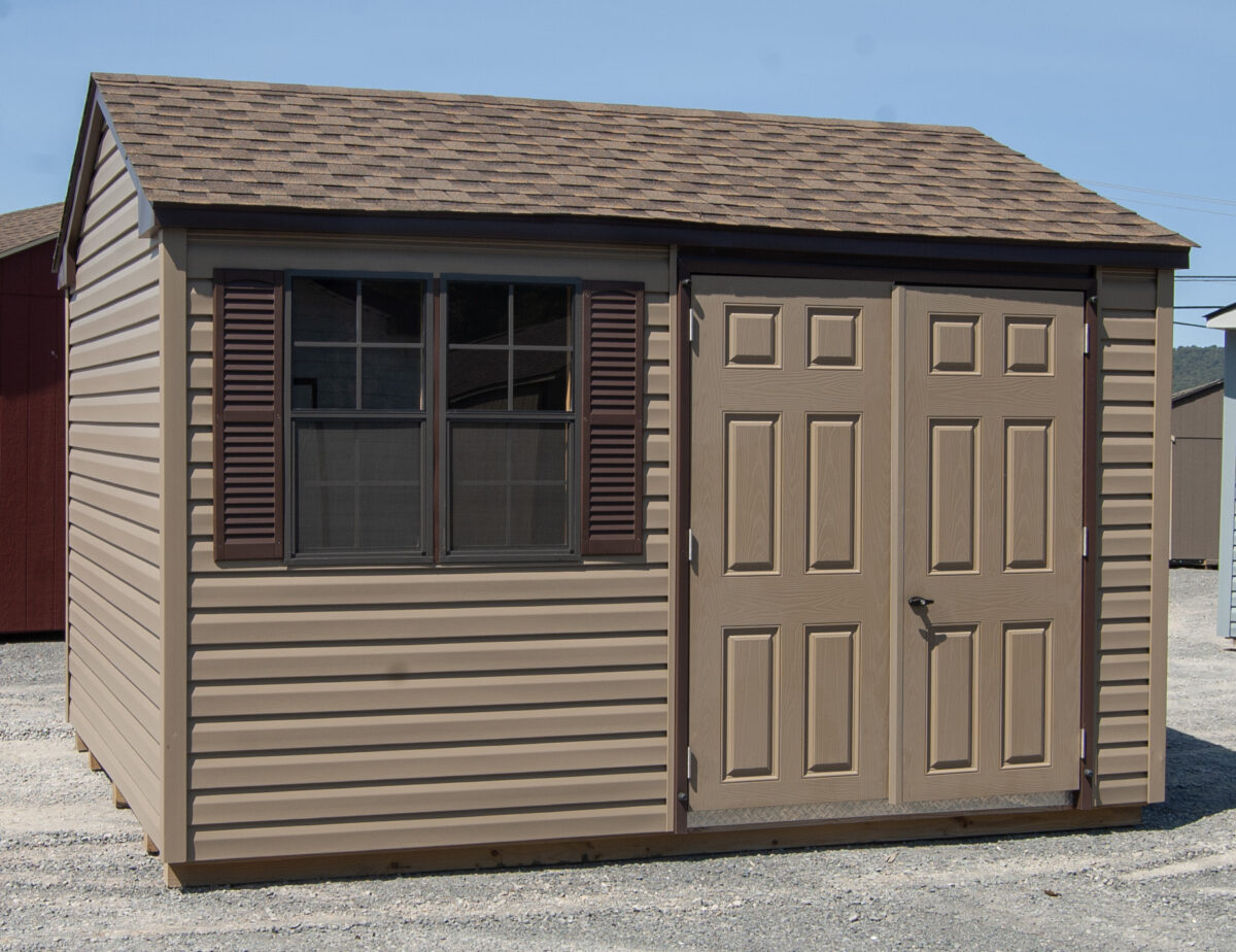 Store all your gear with ease in this storage shed! The double doors allow easy access for lawn movers, tools, and other large items. The diamond tread plate we added at the doorway protects this high traffic area. Make your storage more affordable and ask about our Rent To Own and Financing programs!