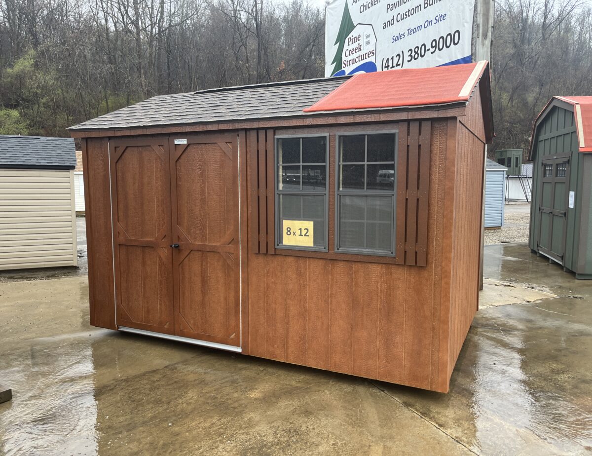This 8×12 Peak Side Storage Shed is in stock