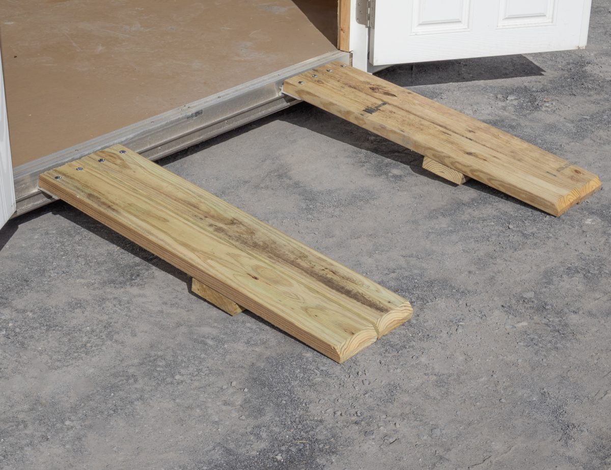 Our beautiful peak style sheds are a great option if you’re looking for a shed that matches the style of your home. They compliment almost any home. We upgrading this building with our moveable ramp system. It include two ramp boards. Leave them in place, or easily pull them off the doorway plate and store them inside until you need to use them.