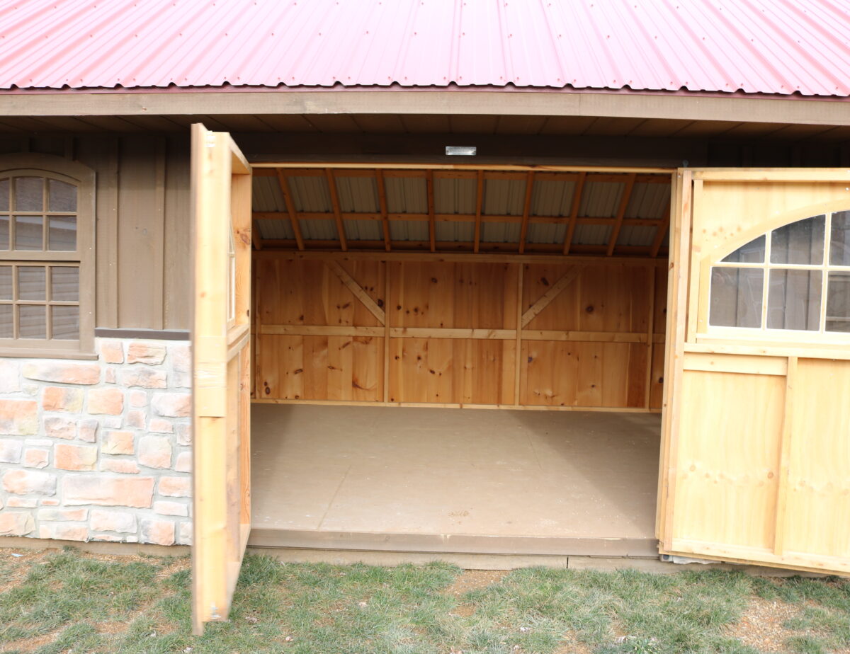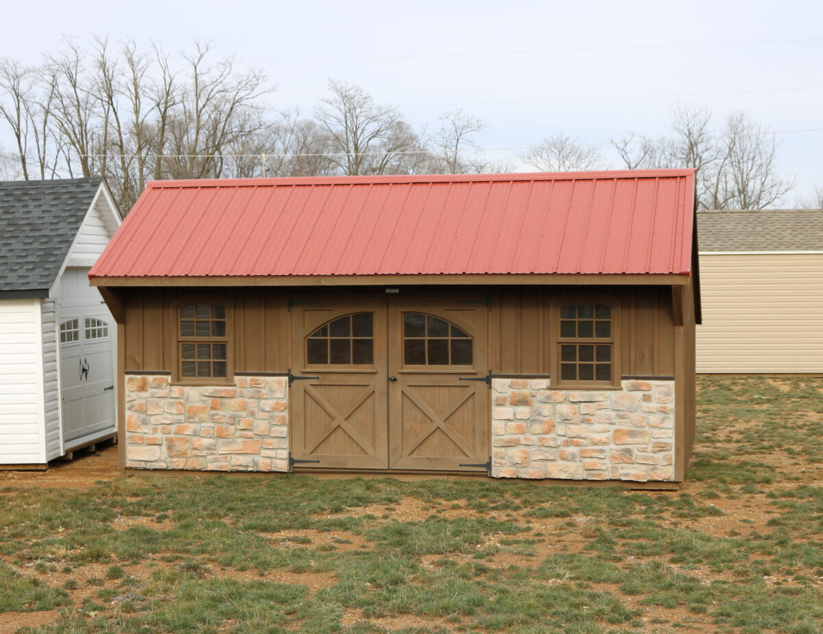 This 12×20 Providence Carriage House is in stock and ready for delivery. With FREE LOCAL DELIVERY. Talk about beautiful. Our Carriage Houses really just top the cake. Real stone front, metal roof, hand crafted wood windows and carriage house doors. They thought of it all when designing this structure. Come on in a look for your self. It is a piece of art. Add a ramp for easier access. RENT TO OWN for $393/mo. Call Milton at 301-331-9590 or E-mail me at mmiller@pinecreekstructures.com for more information.