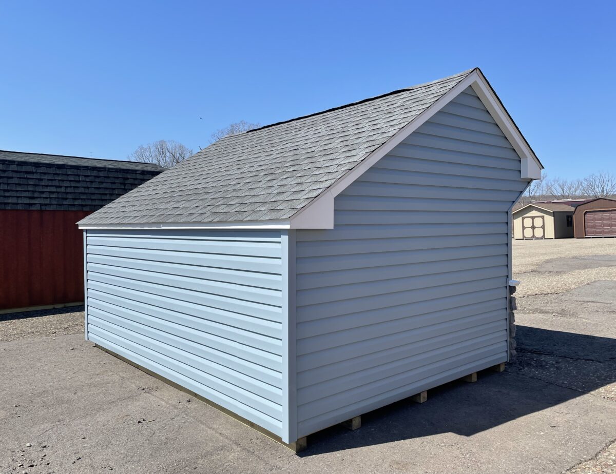 Available for immediate purchase. This elegant Carriage House will have all the neighbors talking. Built to take you back to the 18th century with its unique look. This structure has a cobblestone front, 7’x6′ arch carriage doors, with a window on either side. It also has shingle over ridge vent for better air circulation.
