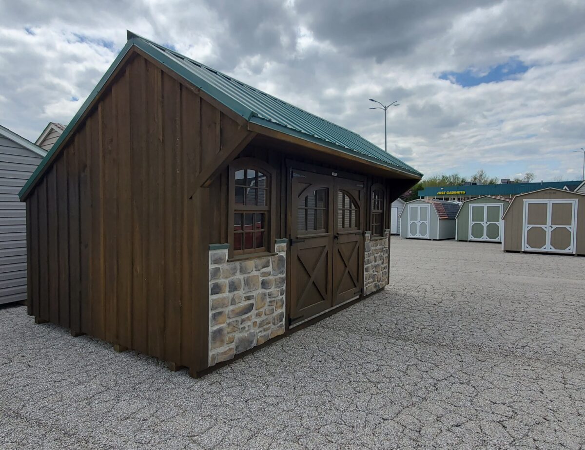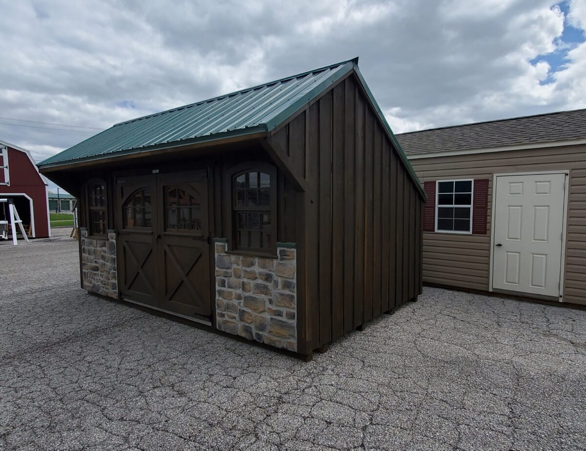 ON SALE NOW!! We have a Board n Batten Providence Carriage House with an Old Town Cobblestone Front at the Pine Creek Structures York location. Add style and beauty to your backyard with this beautiful rustic structure.