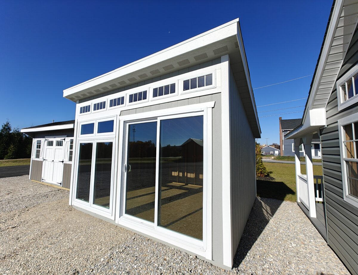 Something new and different here at the Hanover Lot. This specialty built Lean-To Studio recently became available. Could be the perfect structure for a home business or artist studio with its abundance of natural light. Come on over and take a look. For more information call Erik Waltz or Dennis at (717) 646-0771 or email hanover@pinecreekstructures.com Financing is available.