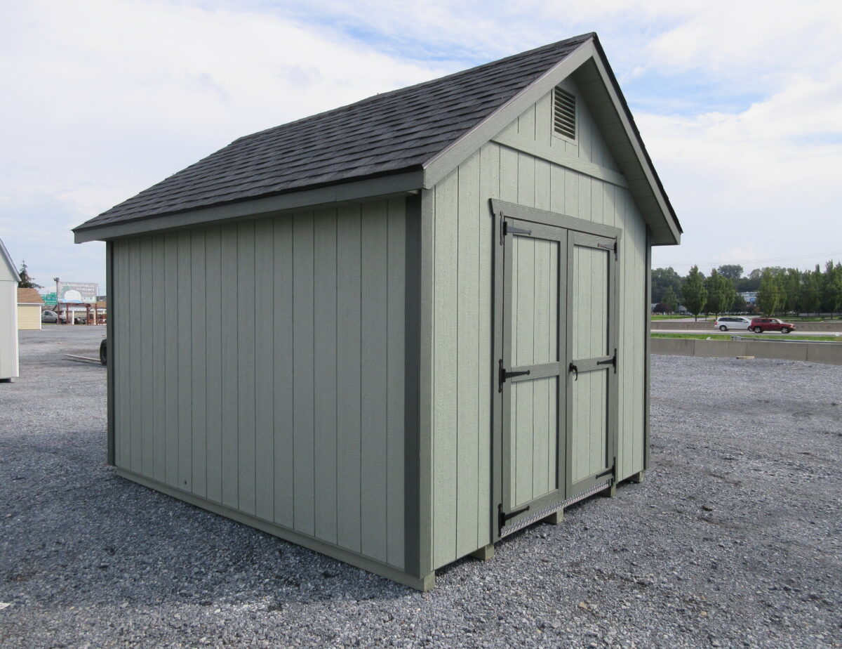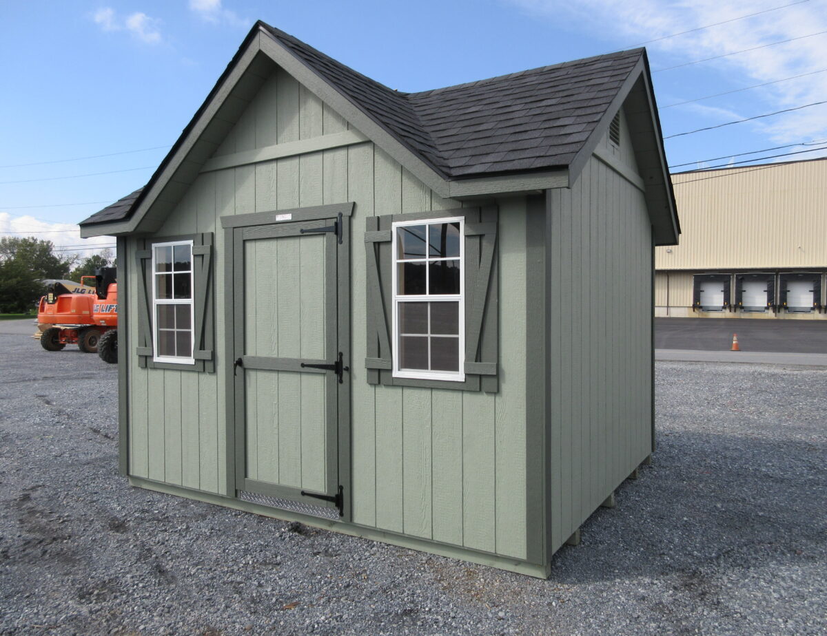 This design is sure to be the envy of your neighborhood, with it’s upscale features! All Victorian Deluxe models come standard with one 36″ door, one double door, two windows with shutters, a roof dormer on the eave side and a shingled roof with 8″ overhangs on all sides.