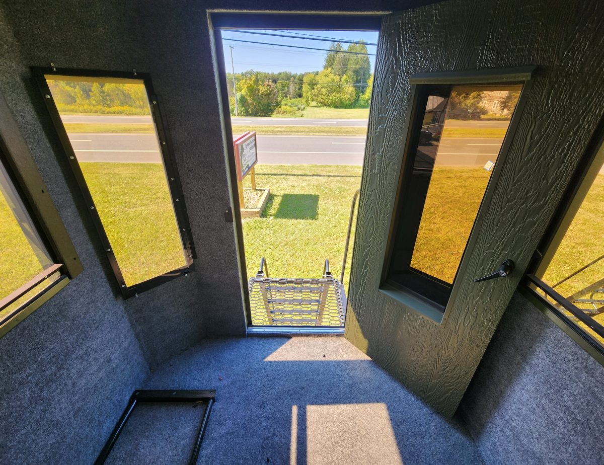 The 5×6 Palace Blind features a rectangular shape with large windows. It includes 5 large windows and an additional window in the door. This blind option fits up to 3 people. Choose as a ground blind or get the adjustable metal stand. Insulated floor and walls. Carpeted Interior floor to ceiling. Accessory shelf and much more. This blind is also offered in a 6×6 High Rise or 4×4 Condo as well. Also many delivery options available.