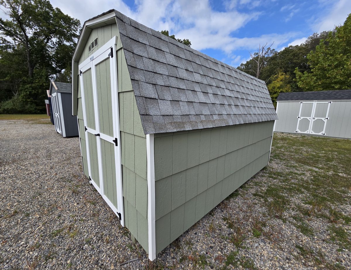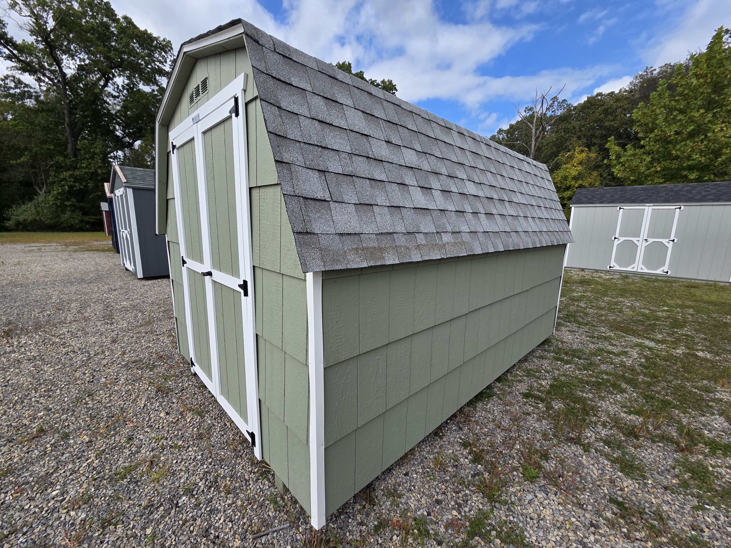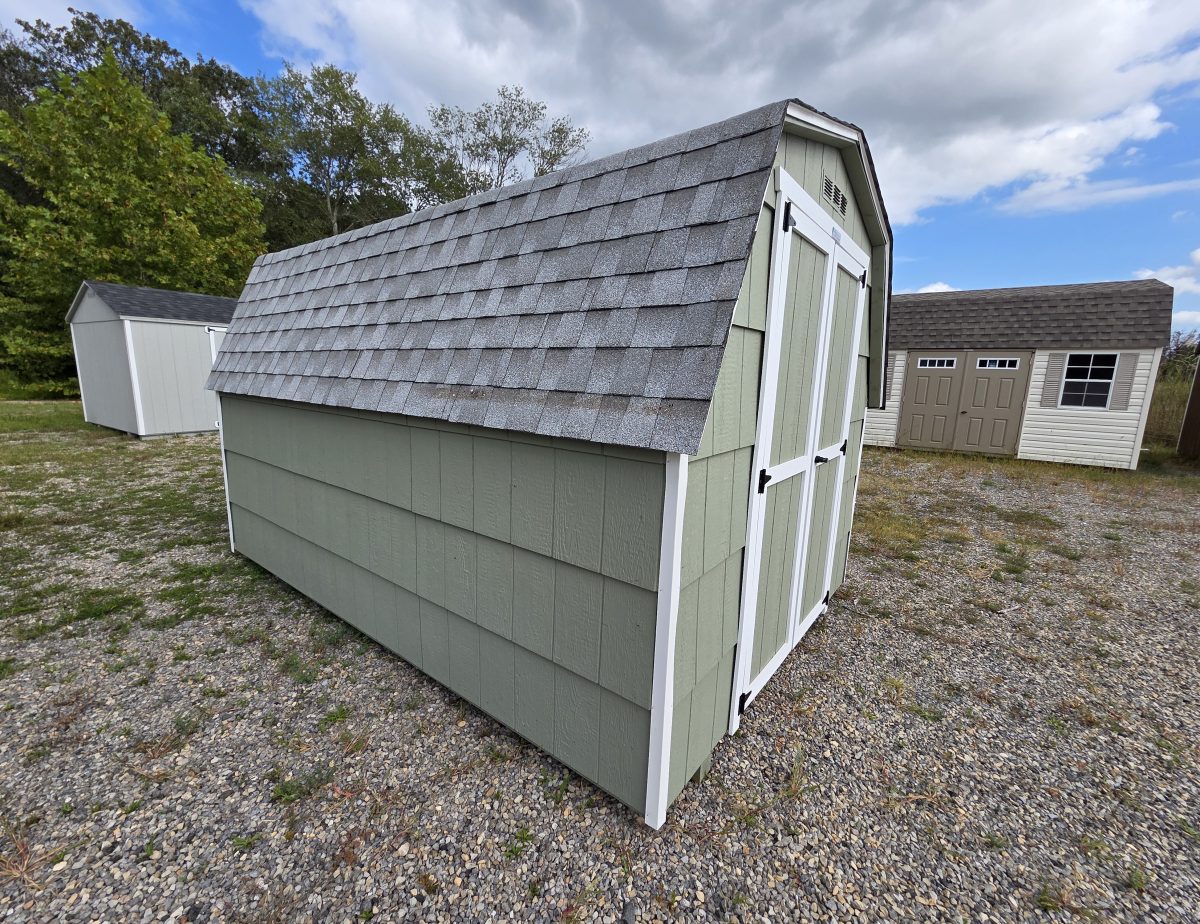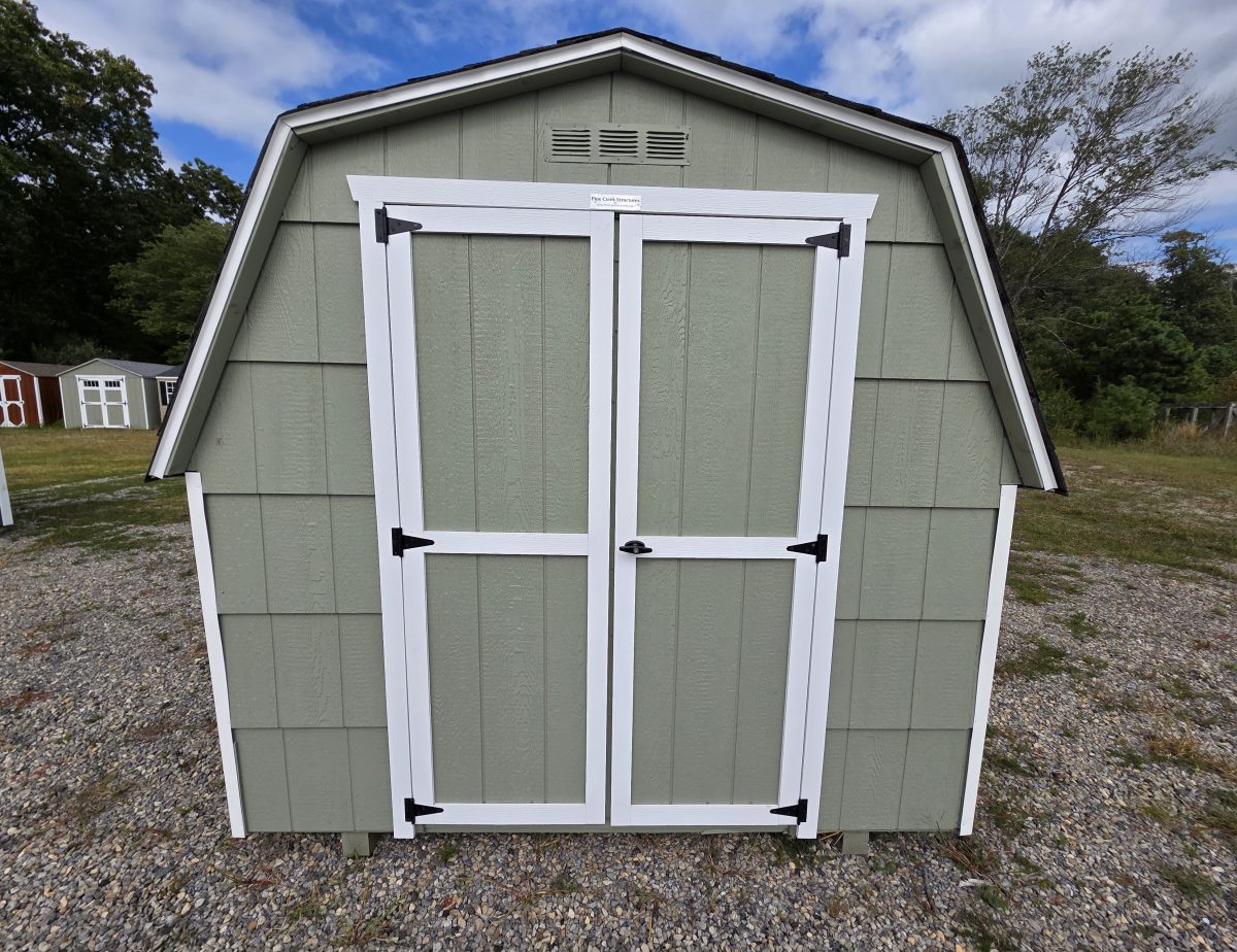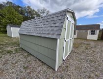 Here we have an economical solution for your backyard storage needs. This mini barn looks great with the lapped lp siding and light green color. This is a great option to fit any budget.