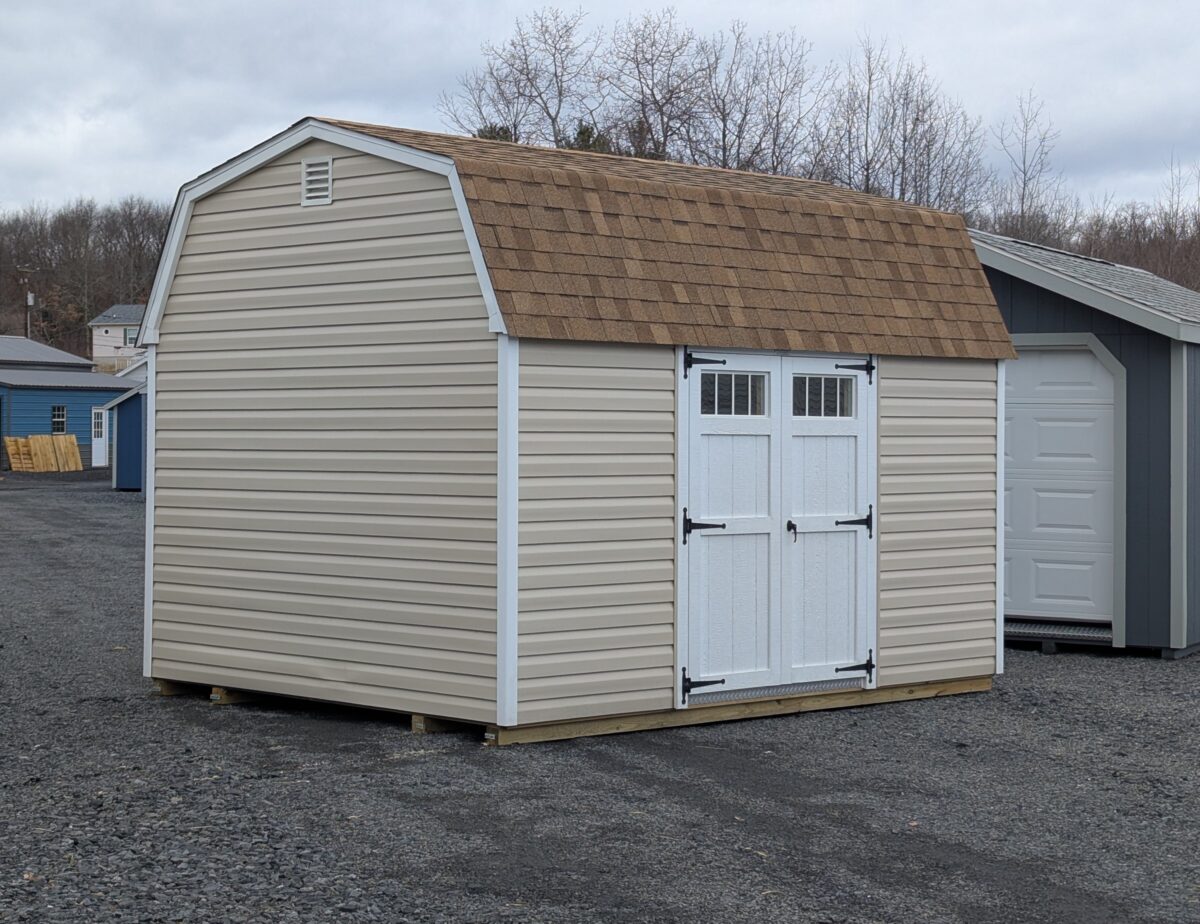 The 10×14 Madison Dutch Barn delivers dependable storage, strong construction, and timeless design for homeowners in Wilkes-Barre and the Wyoming Valley. As part of the Madison Series economy line, this model combines quality materials with practical savings. Its gambrel roof and tall sidewalls create more overhead space than a standard peak shed, so you gain vertical room for lofts or hanging storage. Because of that extra clearance, you can keep bulky items like ladders, kayaks, or holiday decorations neatly out of the way.