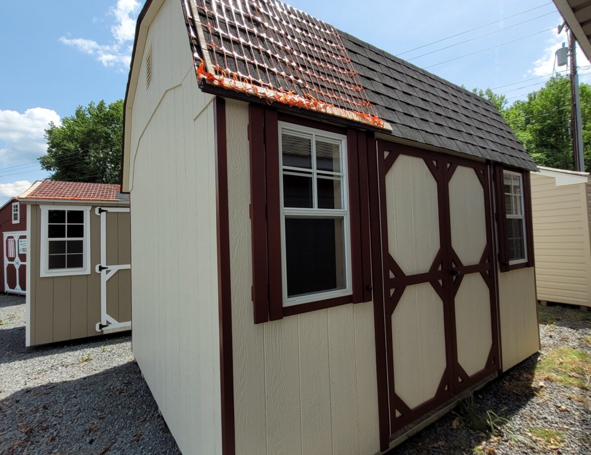 Featured in white body, red shutters, red trims, and a charcoal roof. Quite spacious.