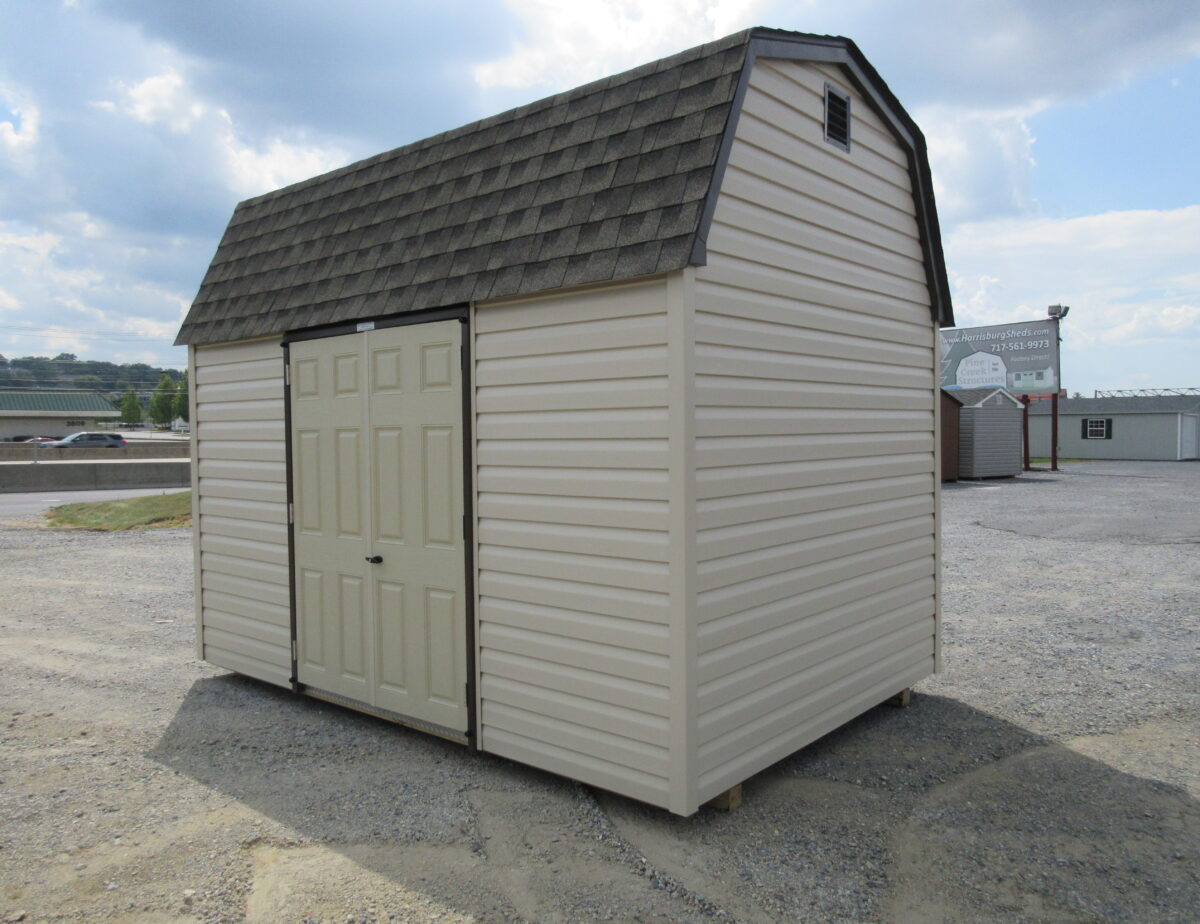 Our Madison Series storage sheds are the economical choice! Designed with a lighter build and to be budget friendly, the Madison Series includes 3″ roof overhangs with aluminum drip edge, aluminum corner trim, two end vents and a keyed door handle. It is built with 2″x4″ floor joists spaced 16″ OC and 2″x3″ wall and rafter construction spaced 24″ OC. The Madison Series is only available in small sizes (larger buildings require our standard Heavy Duty construction).
