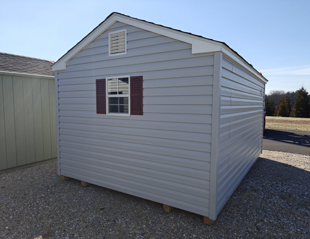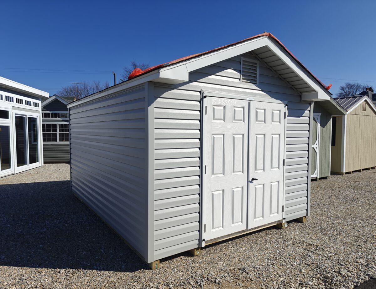 Just arrived in Hanover. Front Entry Peak Style Madison with a few very nice upgrades! Maintenance free with vinyl siding and fiberglass double door, upgraded flooring, workbench, gable vents, diamond plate door sill protection and more. Stop by and check it out. Or for more details call Erik Waltz or Dennis at 717-646-0771. Financing and Rent-To-Own available