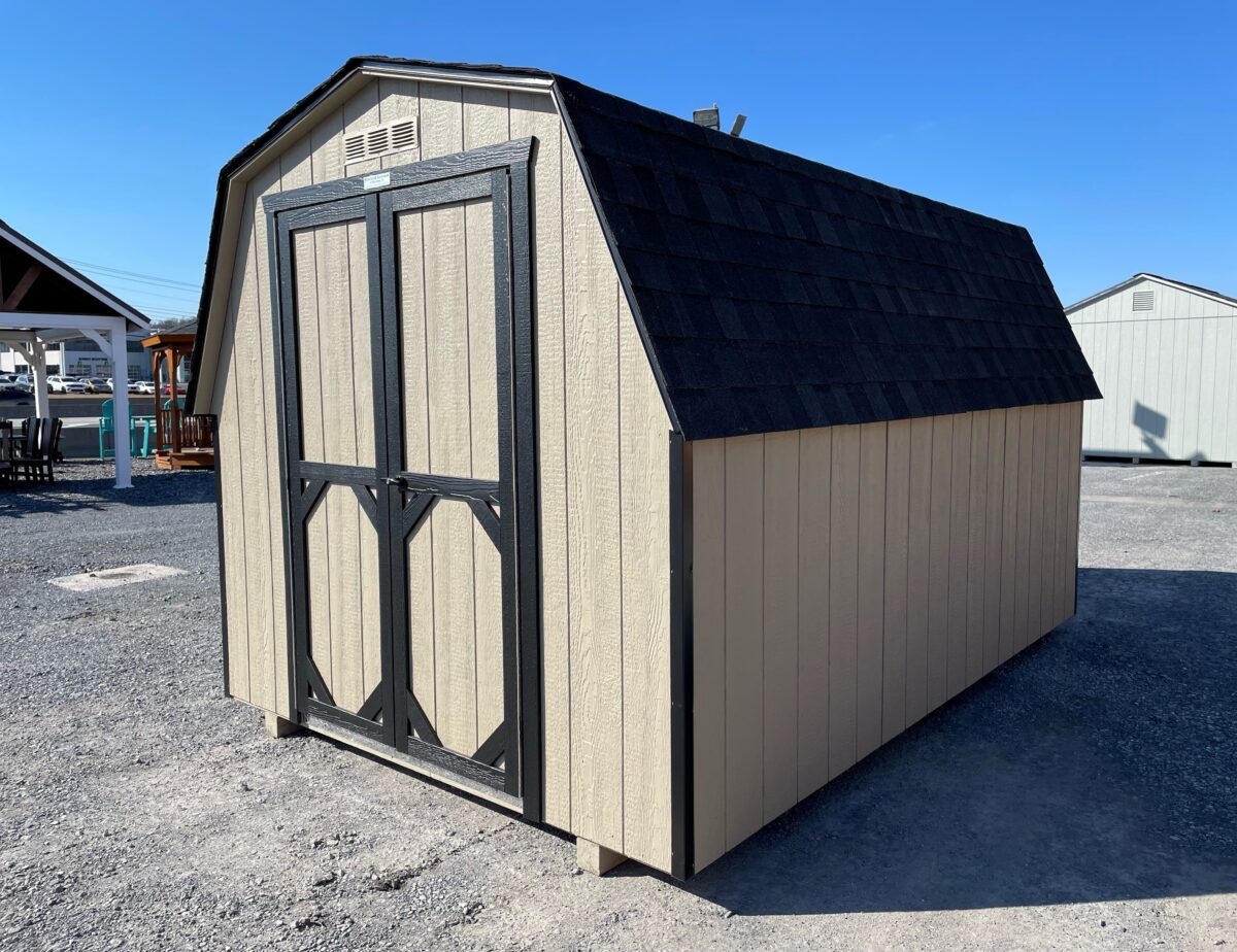 Our Madison Series storage sheds are the economical choice! Designed with a lighter build and to be budget friendly, the Madison Series includes 3″ roof overhangs with aluminum drip edge, aluminum corner trim, two end vents and a keyed door handle. It is built with 2″x4″ floor joists spaced 16″ OC and 2″x3″ wall and rafter construction spaced 24″ OC. The Madison Series is only available in small sizes (larger buildings require our standard Heavy Duty construction).