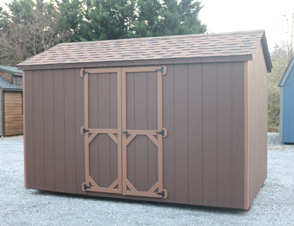 - 2 air vents, Choice of colors, 2x3 walls and rafter construction, 4x4 Pressure treated runners, 2x4 Floor joists, Nailed on shingles not stapled.
