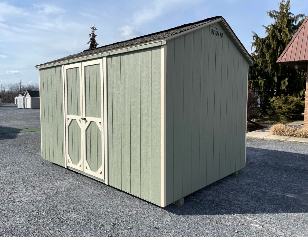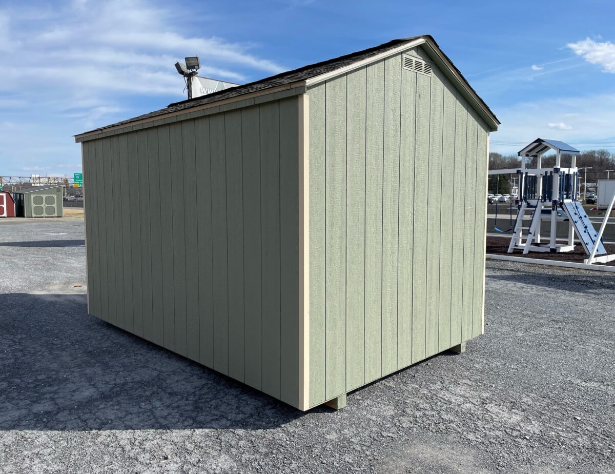 Our Madison Series storage sheds are the economical choice! Designed with a lighter build and to be budget friendly, the Madison Series includes 3″ roof overhangs with aluminum drip edge, aluminum corner trim, two end vents and a keyed door handle. It is built with 2″x4″ floor joists spaced 16″ OC and 2″x3″ wall and rafter construction spaced 24″ OC. The Madison Series is only available in small sizes (larger buildings require our standard Heavy Duty construction).