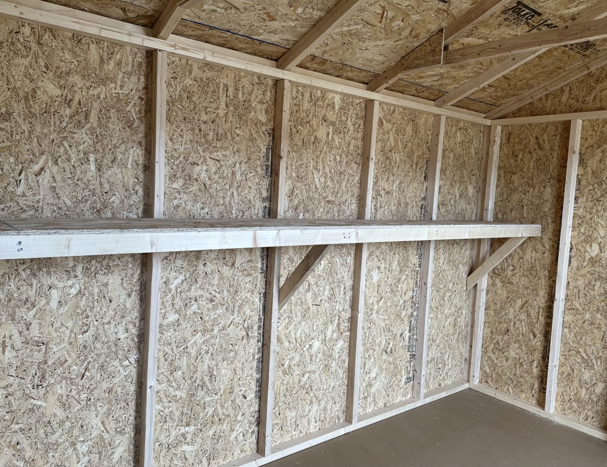 - Built-in Organization: A 16-inch interior shelf runs the entire 12-foot span, providing instant overhead storage for bins, tools, and hardware.