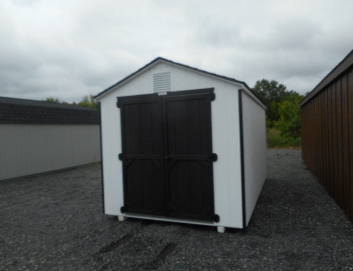 The Madison Series includes 3” overhang with aluminum drip edge, aluminum corner trim, two end vents, and a keyed door handle. These sheds are built with 2×4 floor joists (spaced 16” on center) and 2×3 wall and rafter construction (spaced 24” on center).