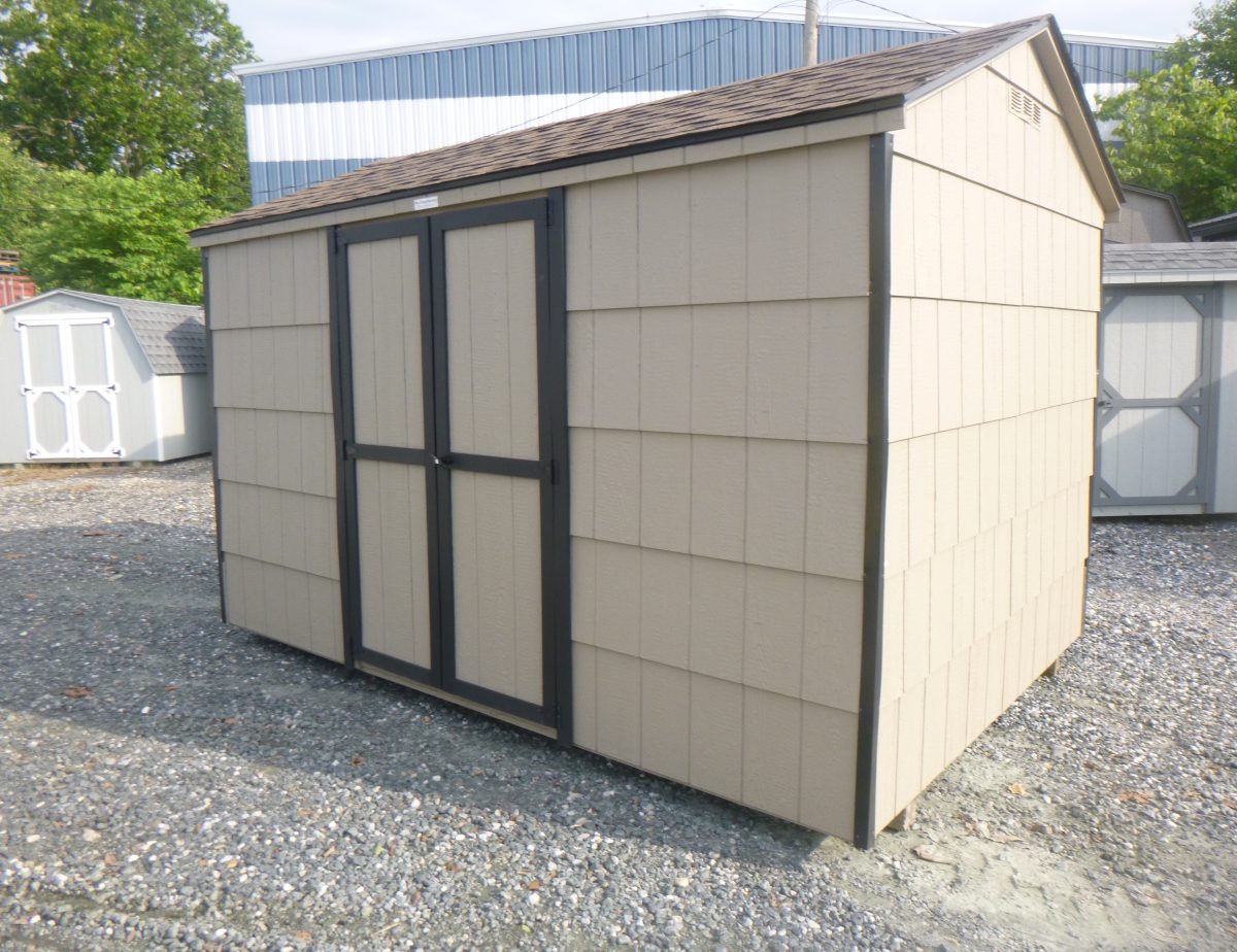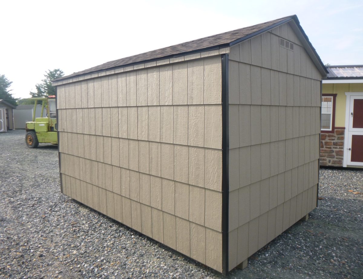The Economy Cut Lap is designed with your budget in mind with an older look. The Economy includes 4×4 pressure treated runners, 2×4 floor joists (16″ on center), 5/8″ floor sheeting, 2×3 wall and rafter construction (24″ on center), 3″ overhang with aluminum drip edge and corner trim, keyed lock, and 2 air vents. Another quality yet economic choice from Pine Creek Structures. This shed is not available to order