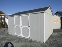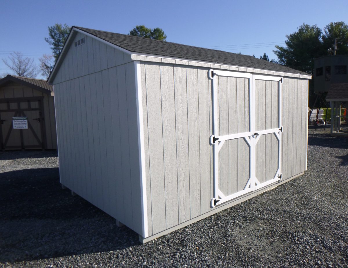 Our Madison Series storage sheds are the economical choice, designed with a lighter build to be budget friendly. The Madison Series includes lifetime shingles, 3” overhang with aluminum drip edge, aluminum corner trim, two end vents, and a keyed door handle. It’s built with 2×4 floor joists (spaced 16” on center) and 2×3 wall and rafter construction (spaced 24” on center). The Madison Series is only available in small sizes (larger buildings require our standard Heavy Duty construction).
