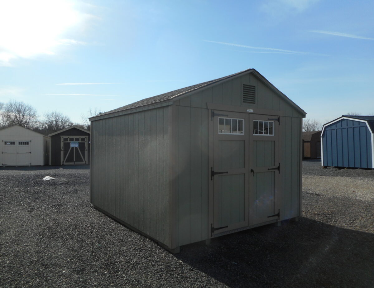 Finished in a striking PC Green with PC Clay trim and Rustic Slate GAF Shingles, this shed is built to withstand the elements while enhancing your property’s curb appeal. The interior is upgraded with a coated floor for superior moisture resistance and durability. Access is a breeze thanks to the 5′ double doors, accented by 4″ transom windows that let in natural light without sacrificing security