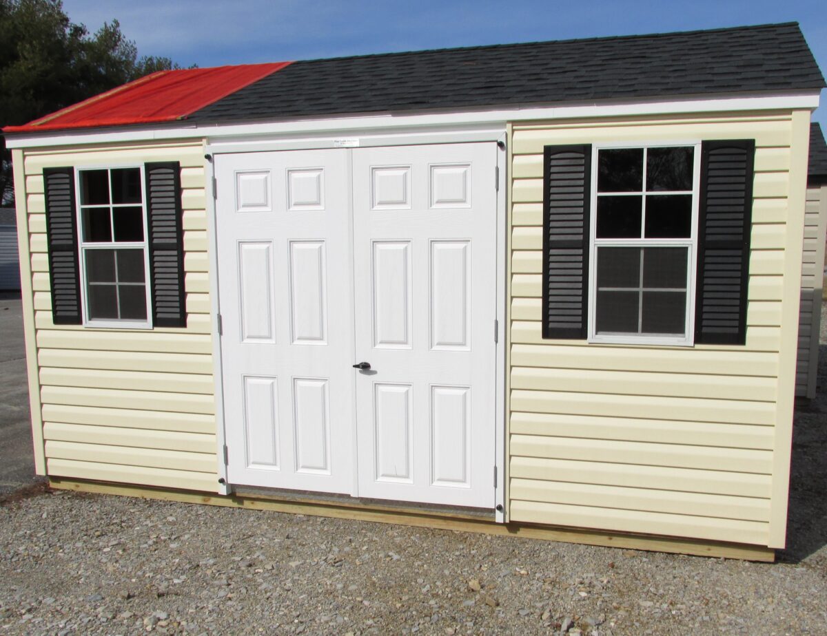 AVAILABLE, THIS AMISH BUILT STORAGE BUILDING AT PINE CREEK STRUCTURES IN YORK, PA. LOW COST STORAGE IN YOUR OWN BACKYARD WITH LIFETIME VINYL SIDING AND SHINGLES! CALL RAY AT 717-792-2340 OR EMAIL york@pinecreekstructures.com