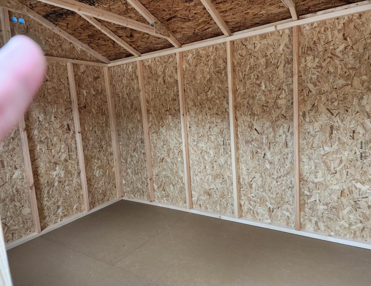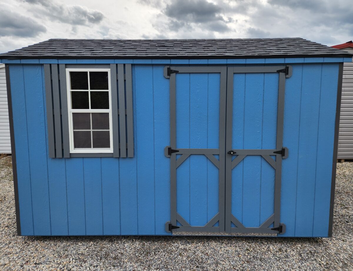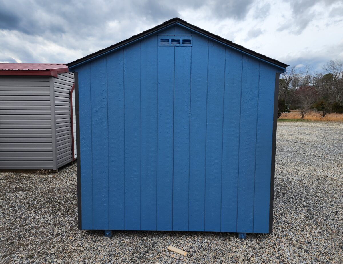8’x12′ Side Entry Madison Peak storage building. This economy storage building has an upgraded coated floor, one 18″x36″ single hung window, and a diamond tread plate.