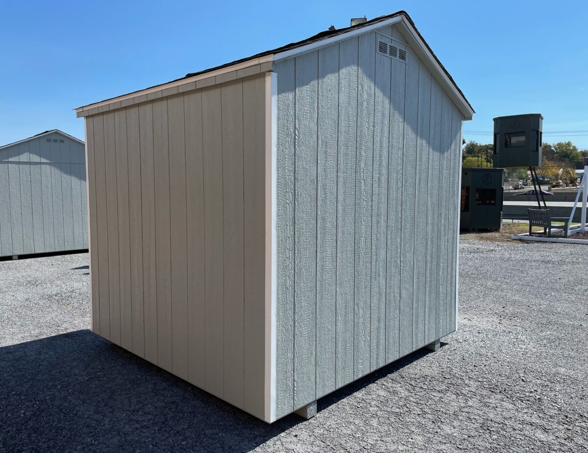 Our Madison Series storage sheds are the economical choice! Designed with a lighter build and to be budget friendly, the Madison Series includes 3″ roof overhangs with aluminum drip edge, aluminum corner trim, two end vents and a keyed door handle. It is built with 2″x4″ floor joists spaced 16″ OC and 2″x3″ wall and rafter construction spaced 24″ OC. The Madison Series is only available in small sizes (larger buildings require our standard Heavy Duty construction).