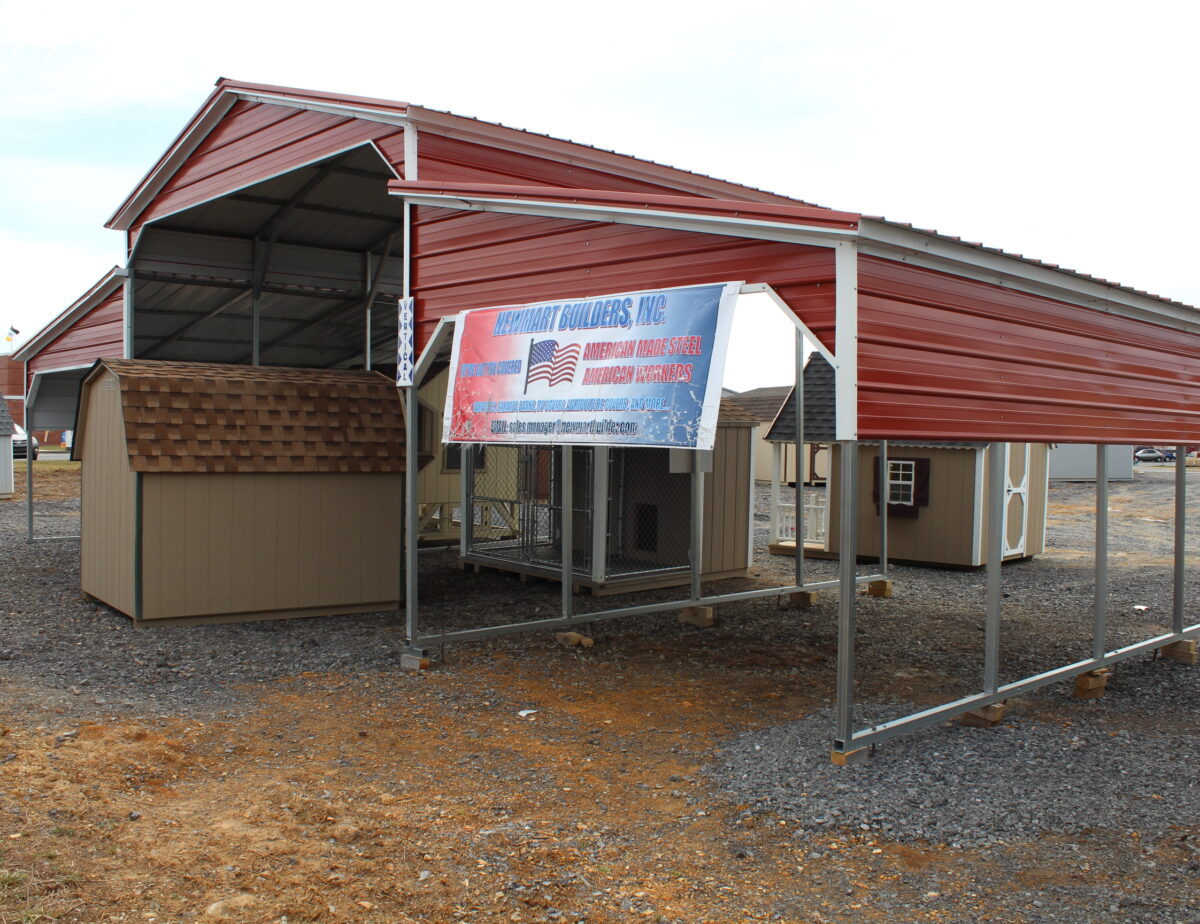 Built to your specifications. This building is a 42×21 standard with 10′ lean to’s, but the 12′ lean to’s makes this one 46×21, see options for pricing. These Metal buildings can come open or fully enclosed in all different sizes. New Mart Builders uses all American Made Steel, so it is stronger and more reliable. Call Milton at 304-274-5014 or E-mail me at mmiller@pinecreekstructures.com for more information. For $9600.95taxes, with only $1358.63 Down and $8262.32 due on delivery, this building could be yours.
