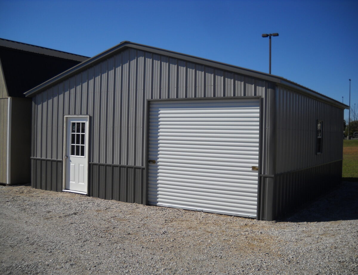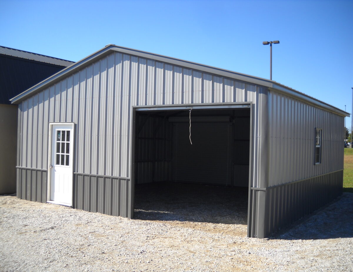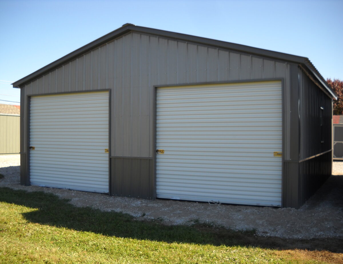 All Metal Garage 24’x26′ with 9′ Wall Height . This unit comes with 3- 9’x8′ Roll Up Doors , 36 Entry Door and 2- 24″x36″ Windows. This unit features Vertical siding and Roof .