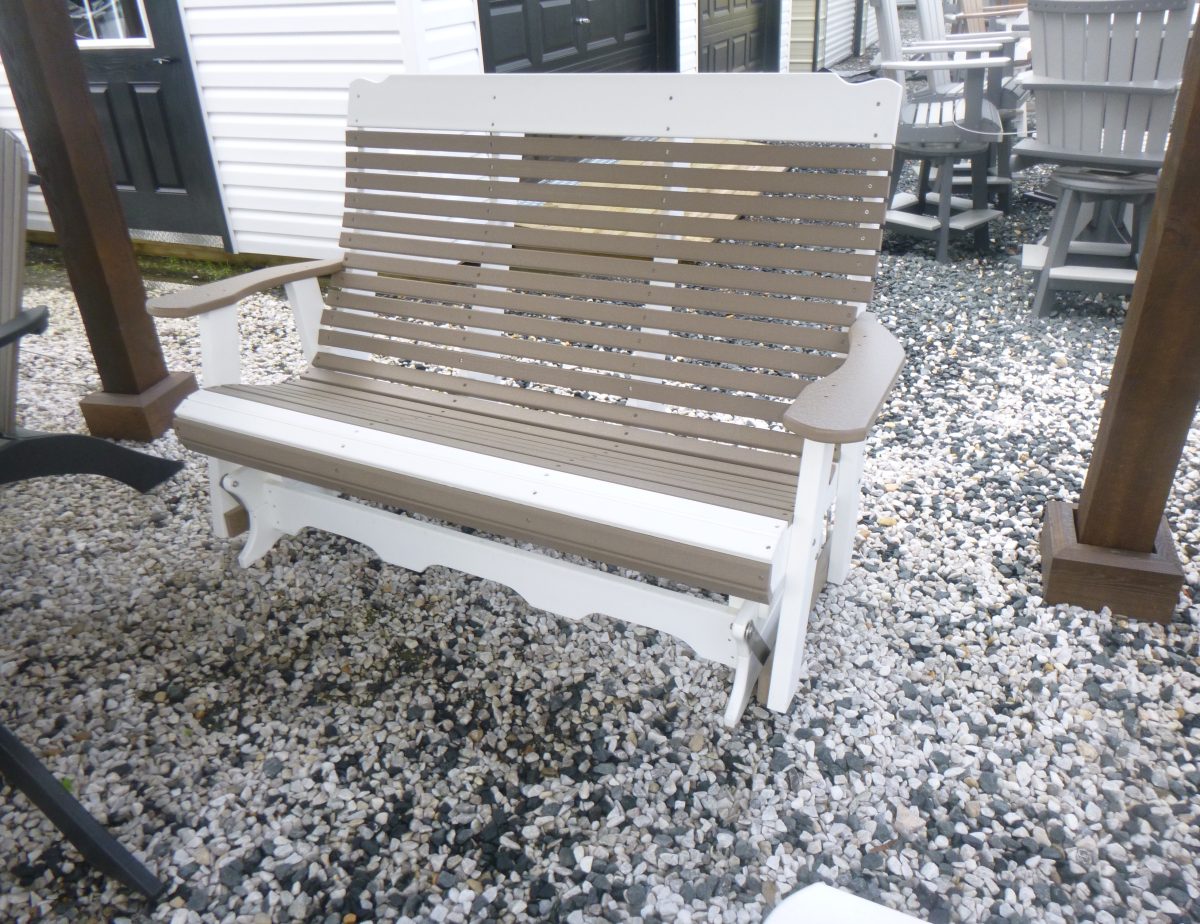 Relax in style with our Poly Gliders from Pine Creek Structures! Crafted from 100% recycled poly material, these eco-friendly gliders are perfect for unwinding on your porch, patio, or garden. Available in 23 vibrant colors, choose from 4’ or 5’ sizes in Swan, Clover, Contoured, Heart, or Fanback styles, all in woodgrain or bright poly finishes. Customize your glider to match your aesthetic or budget. Visit Pine Creek Structures for a sustainable, timeless addition to your outdoor space!