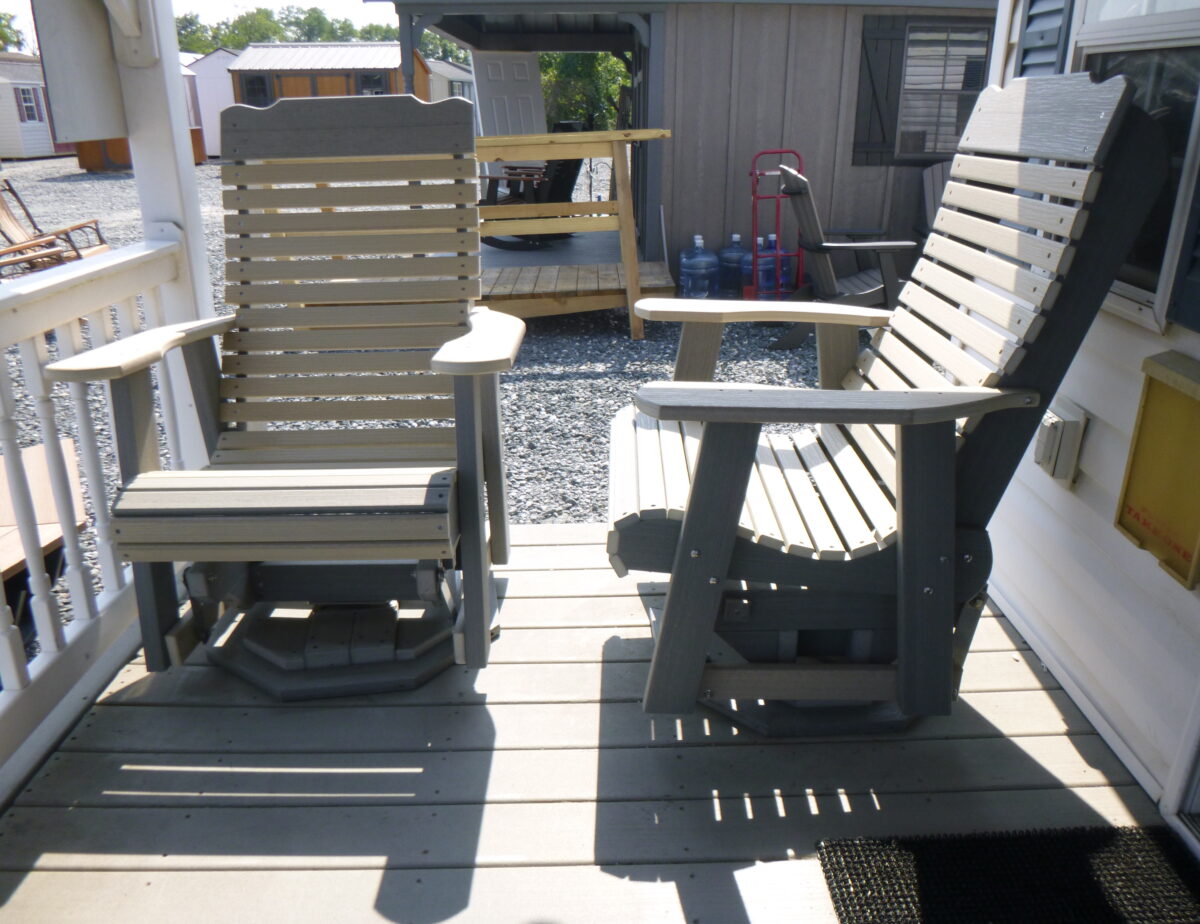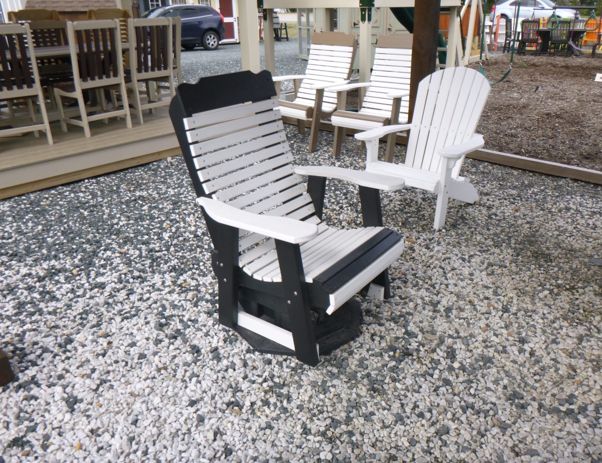 Pine Creek Structures presents poly swivel gliders—durable, eco-friendly outdoor seating crafted from HDPE recycled plastic. These low-maintenance gliders resist fading, cracking, and warping, a smooth glide, and a 360-degree swivel. With ergonomic designs, stainless steel hardware, and vibrant color options, they’re built to last. Don’t see what you want? Come in and design yours to your perfect color choice!