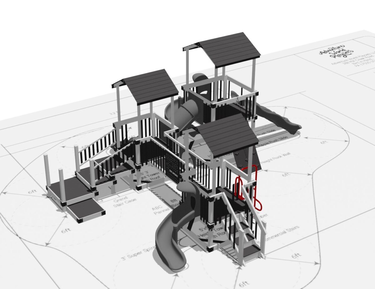 This set features a massive 43′ x 39′ play zone area and is designed to be ADA accessible. Additionally, all our commercial sets come with a 20-year frame warranty and rubber-coated, pinch-free swing chains to ensure long-lasting fun and safety.