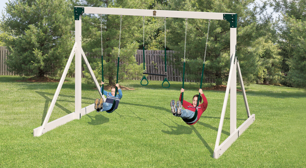 If you are looking for a compact backyard swing set then this freestanding swing set is for you. Featuring 3 swing positions, low maintenance vinyl sleeving pressure treated lumber, and endless summers of memories that as an adult you know are priceless!