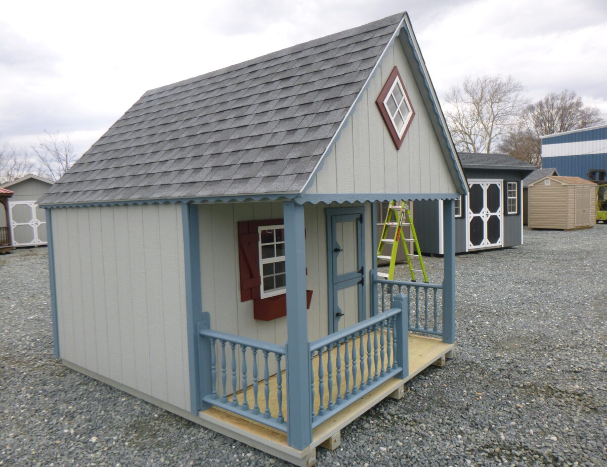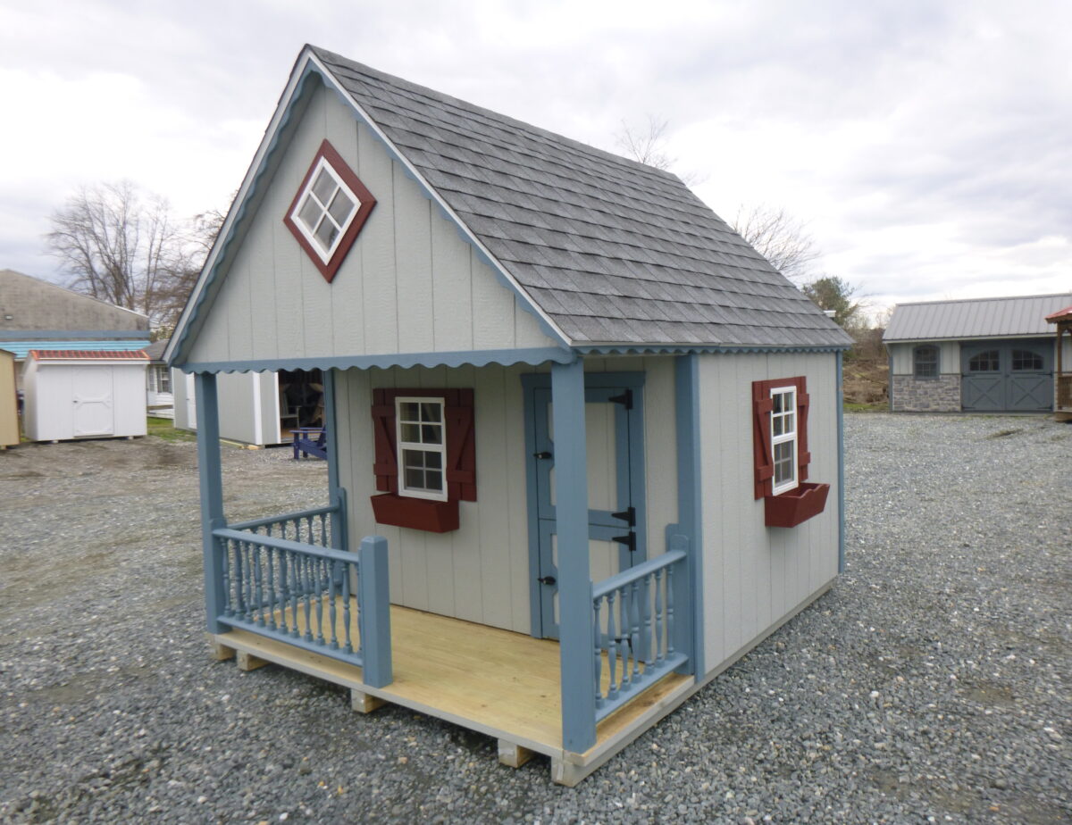 This shed is built for the Little People of the family to play in. It is equipt with many amenities such as a Loft w/Ladder and a Shatterproof Diamond Window plus a 20″x46″ Dutch Door. 2 Shatterproof Windows w/Shutters and Flower Boxes, a Porch w/Railings are also included. There is a Diamond Treadplate to protect the door threashold. For more information regarding this Structure on the Millersville Lot please call.