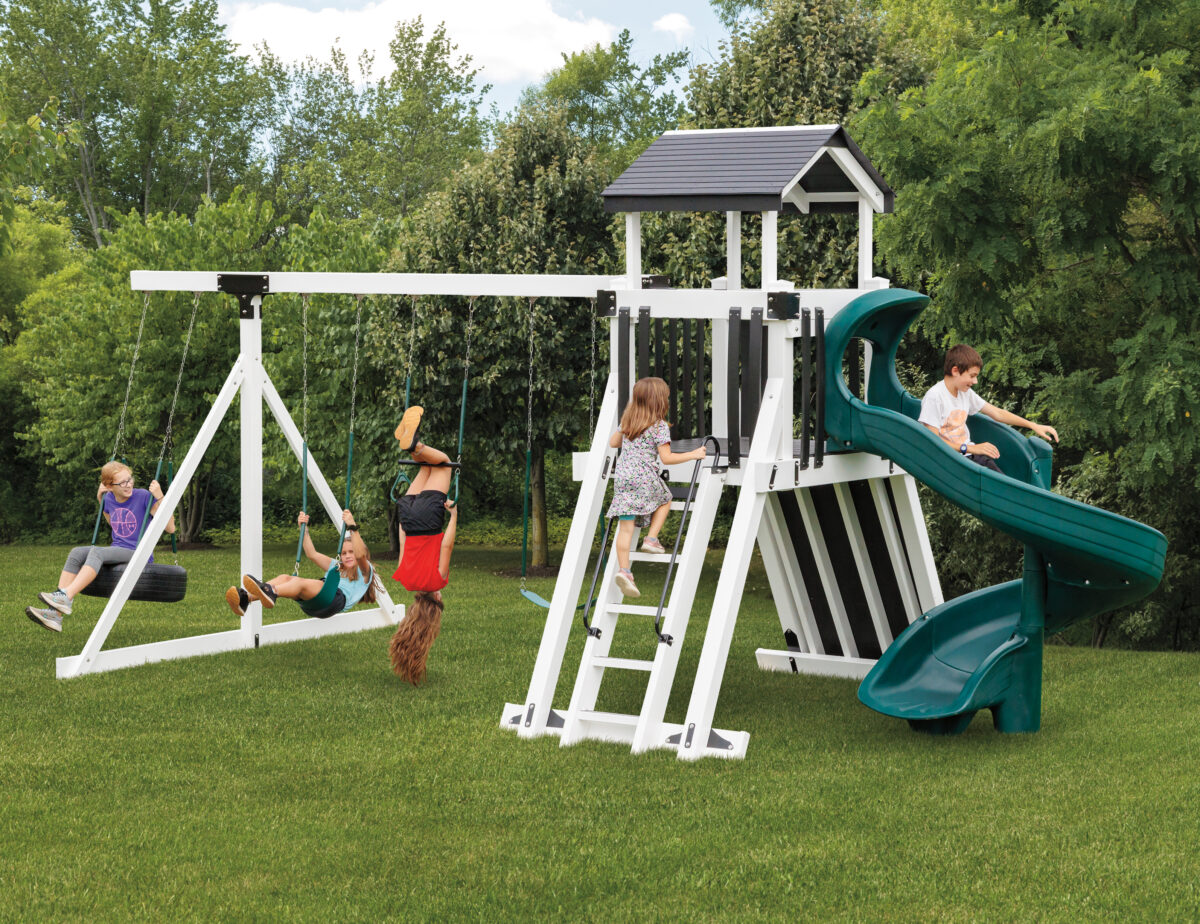 Swings: 2-Belt Swing, Full Bucket Baby Swing, 4 Chain Rubber Tire Swing