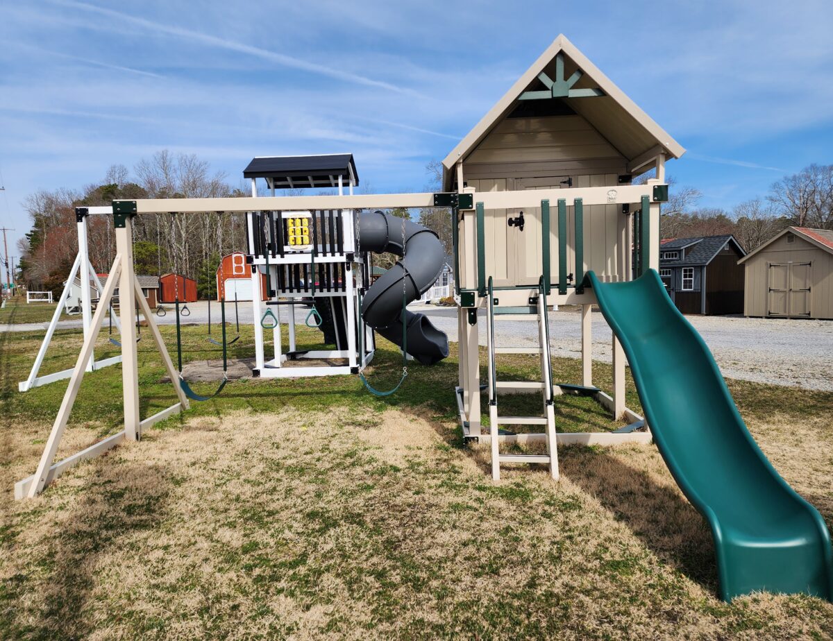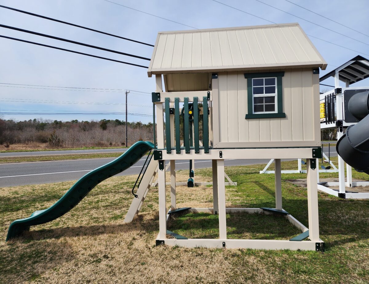Here is a great play set with built i clubhouse. This set is the best of both worlds, boasting a great swing set design with versatile styling adding a playhouse.