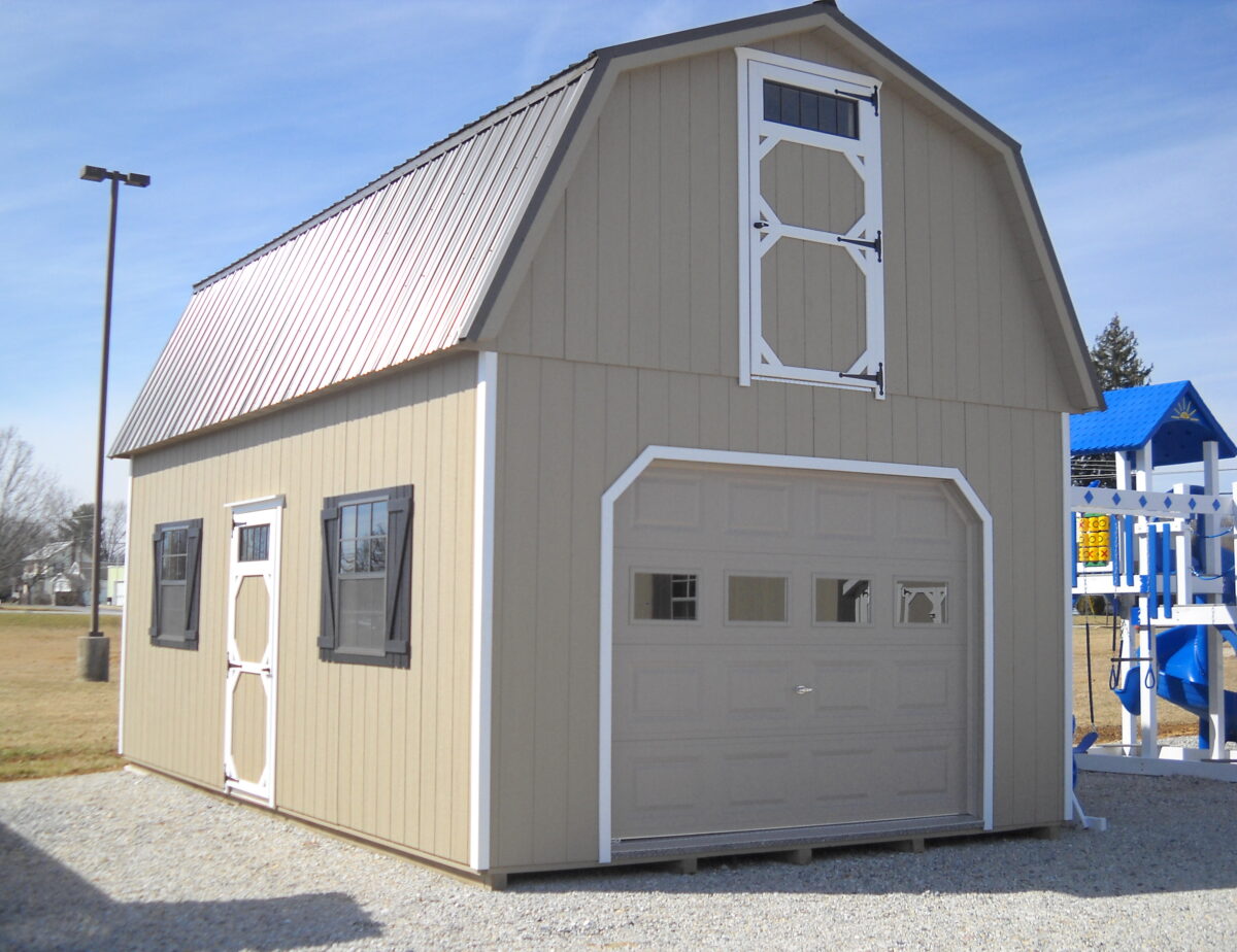 Amish Hand Crafted Garage 2 Story Barn Style. Plenty of storage on second floor as it wide open. Has stairs to second floor or access by door in gable. Store your garden Stuff and lawn Tractors on the first with a 9’x7′ Garage door for access. Floor is built with 12″centers and 3/4″ tongue and groove flooring. this model also includes 2 windows and a single 36″ door on first floor and one each on second floor. Stop by our lot In Littlestown Pa location and experience this shed for yourself. For more Info call Tim at 717-345-6541 or email pinecreektim@yahoo.com